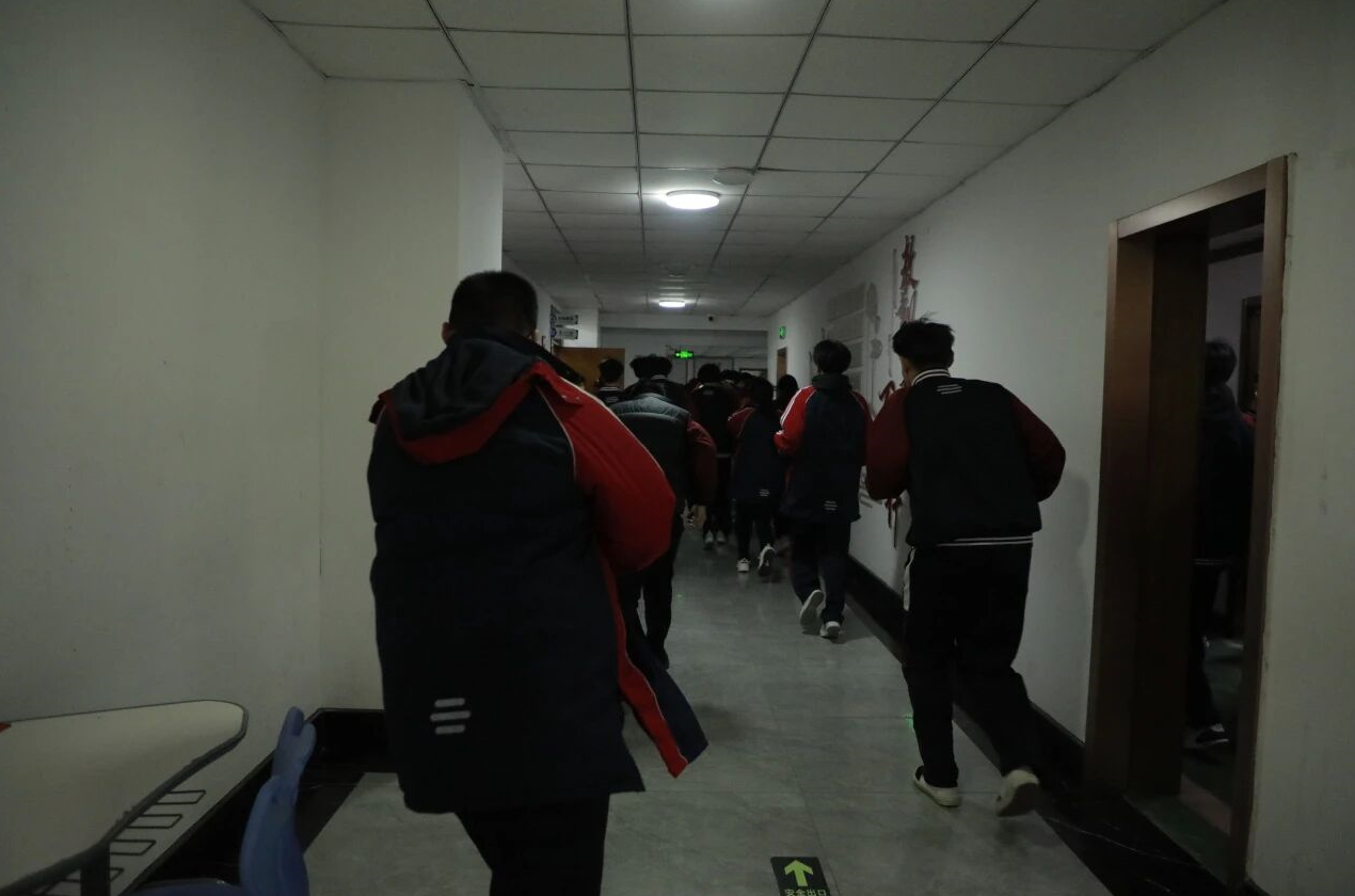 随着一阵急促的警报声在校园内骤然响起,消防演练正式拉开帷幕。正在上课的同学们迅速做出反应,在老师们的组织下,用手或毛巾捂住口鼻,弯腰低姿,按照预定的疏散路线,快速而有序地撤离教室。行动有条不紊,充分展现出了良好的纪律性和应急素养。各班学生在短时间内便安全集结到了校园操场的指定区域。
