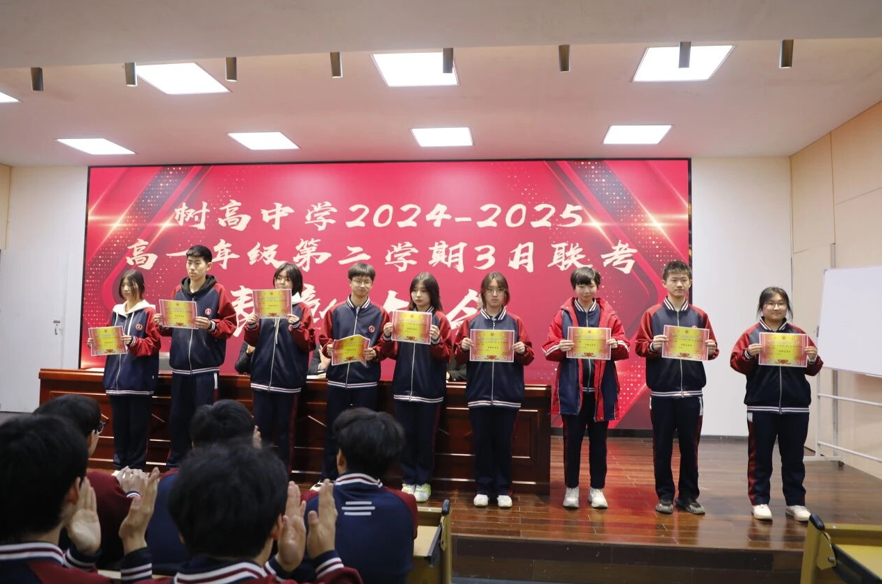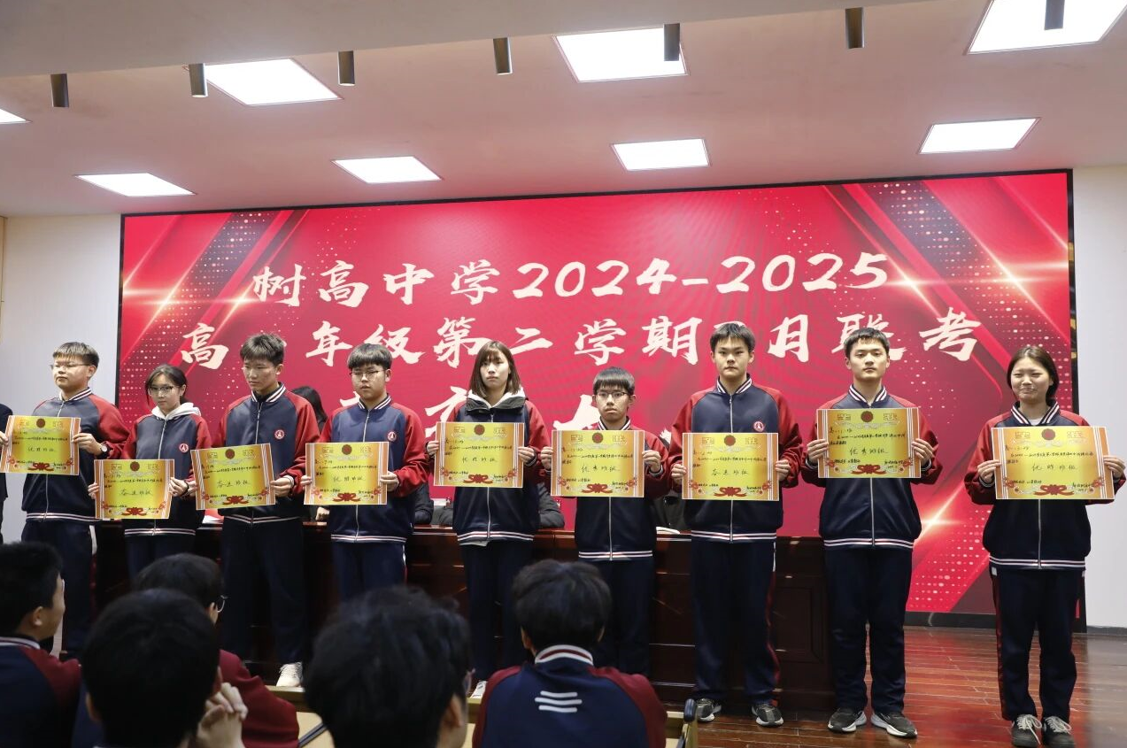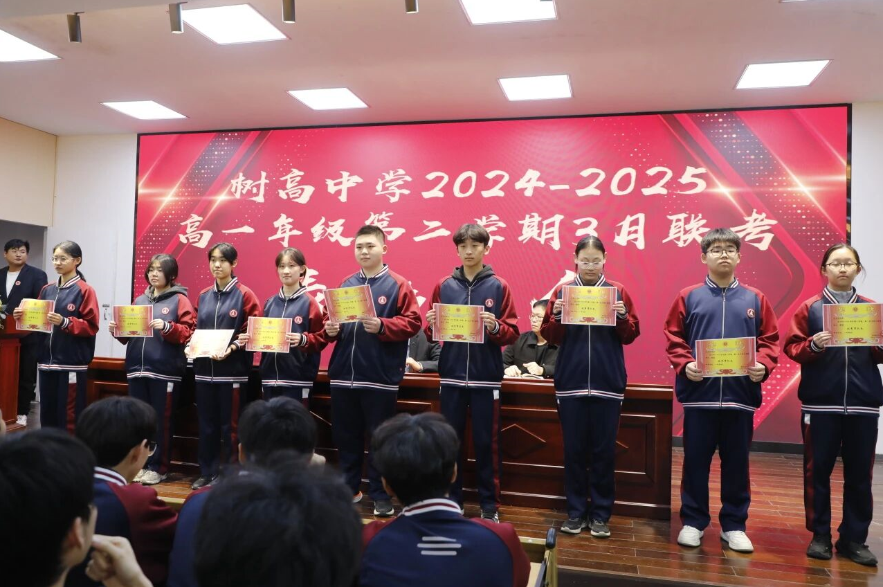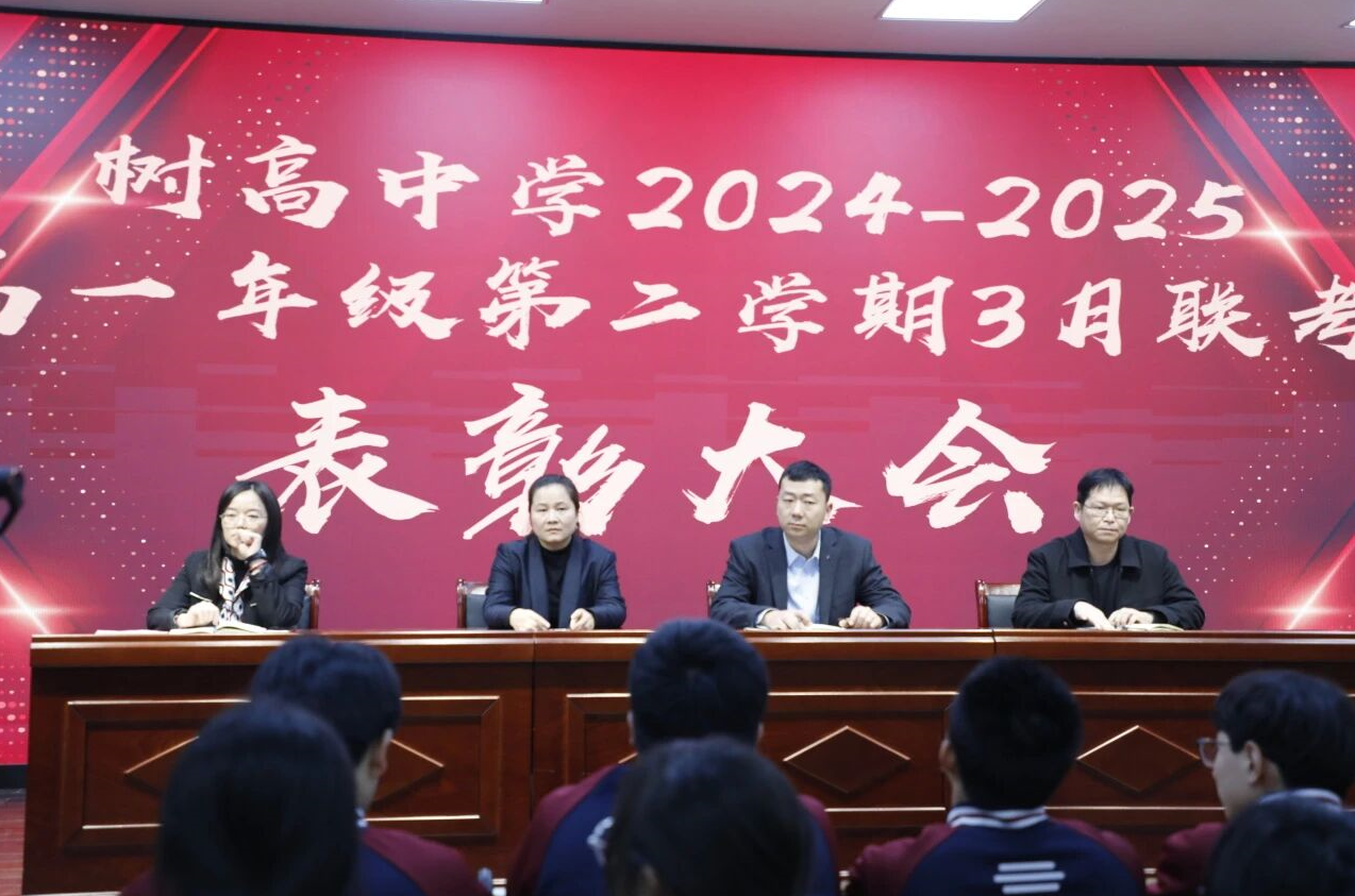近日树高中学隆重举行了2024-2025年高一年级第二学期3月联考表彰大会,对在本次联考中表现优异的同学们、优秀班级、显著进步个人、各学科优秀教师进行表彰。校领导班子、全体师生共同见证了这一荣耀时刻!