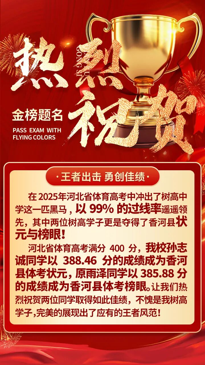 【热烈祝贺】我校孙志诚、原雨泽斩获河北省体育高考香河县状元、榜眼!